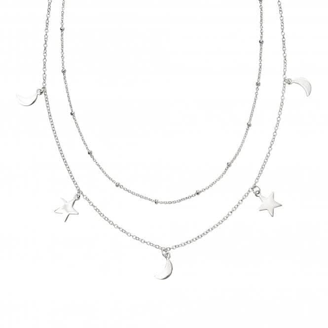 The Sterling Silver Moon & Star Double Row Necklace from the Beginnings collection is a softly layered piece inspired by celestial rhythm and balance. Crafted from 925 sterling silver, this necklace features two delicate rows adorned with moon and star motifs, creating gentle depth and movement while remaining refined and easy to wear.